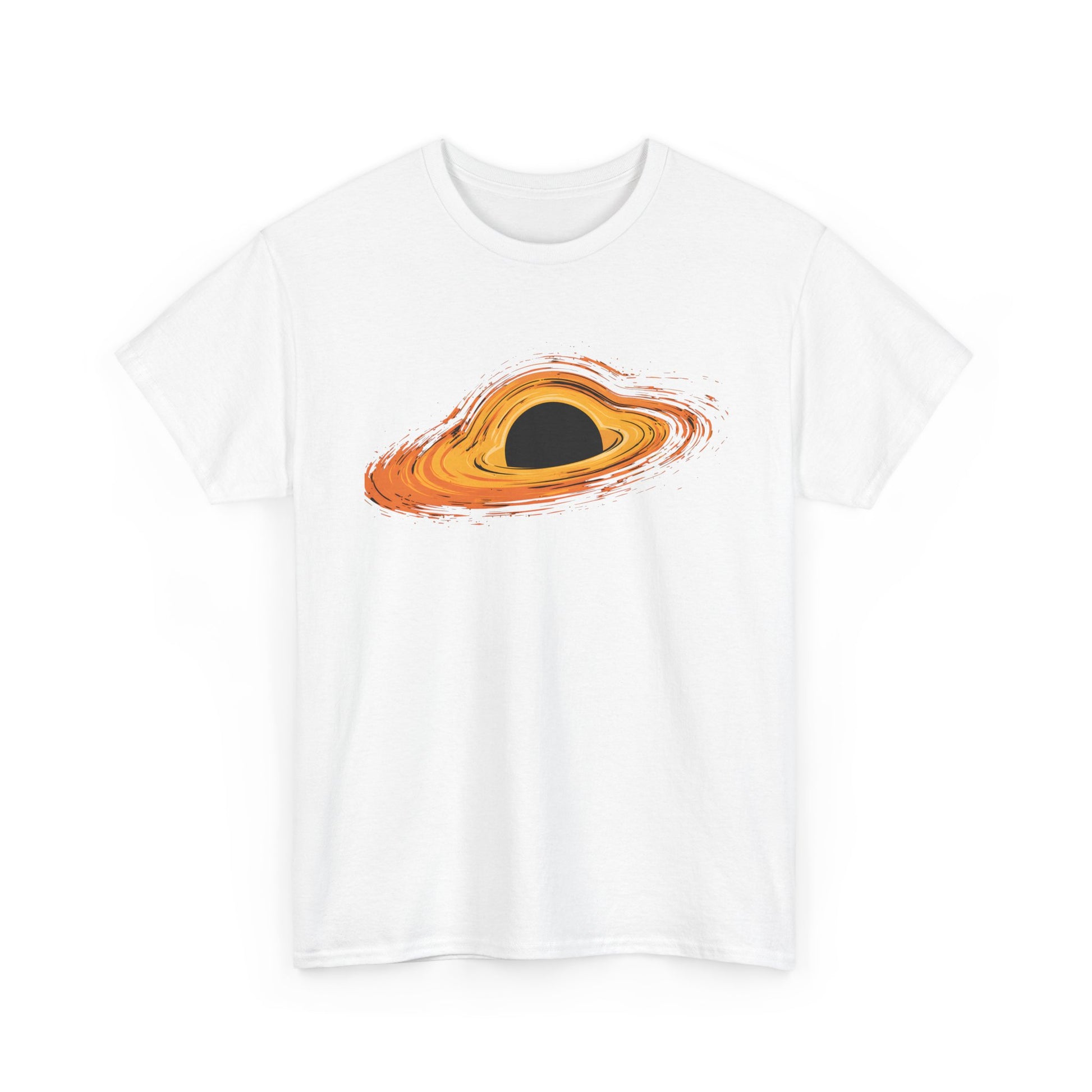 This tee wears like late-night stargazing. A small, mischievous black hole graphic sits off-center or on the chest, the kind of science art that sparks conversations with fellow nerds. The fabric is smooth and substantial — a medium-weight cotton that holds the print crisp and flat. It drapes relaxed across the shoulders and stays true to shape after washes, so you can reach for it between lab meetings, lecture nights, or casual hangouts at the observatory. The look reads clever, low-key, and a little cosmic — for anyone who loves space, dark humor, or science that isn’t afraid to be adorable.