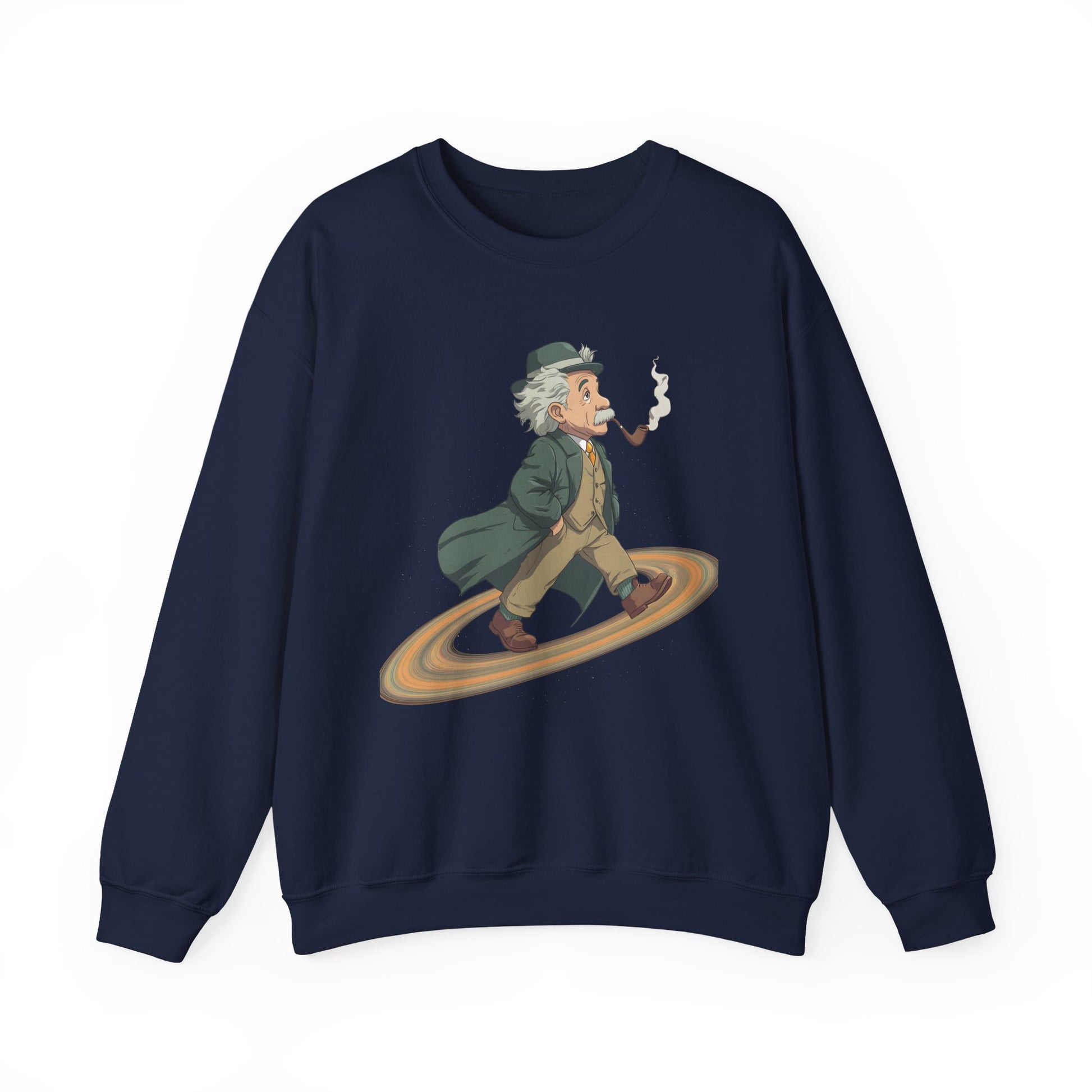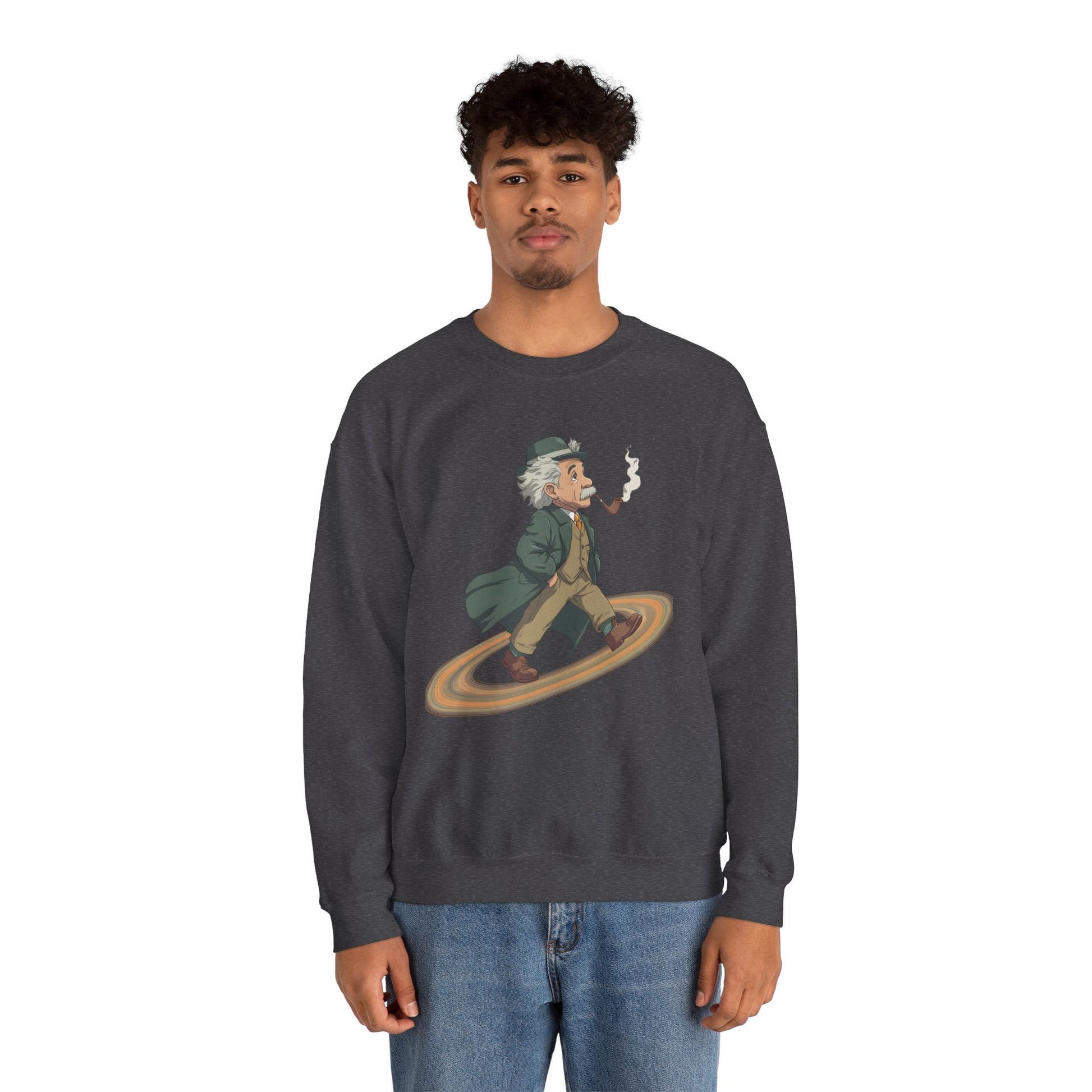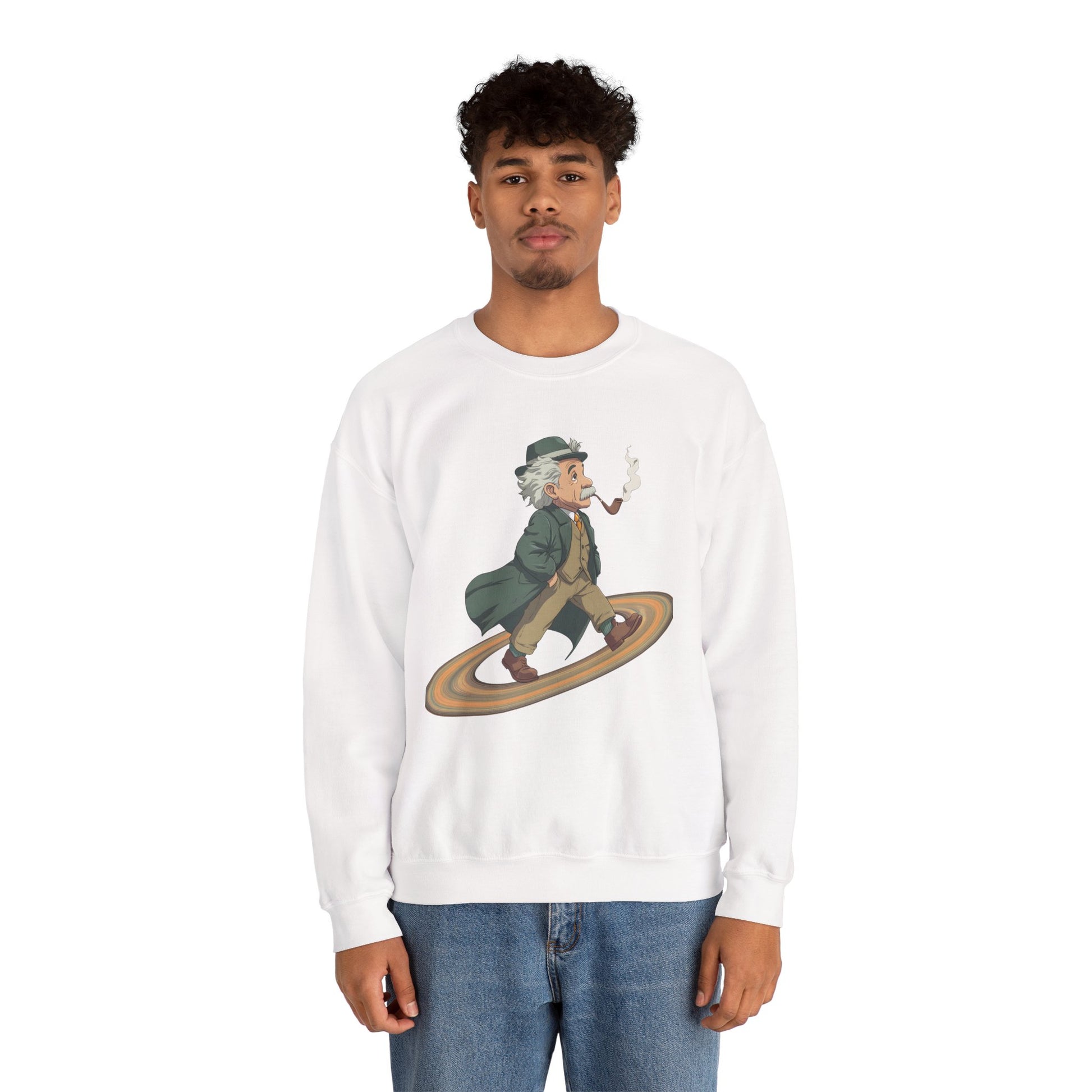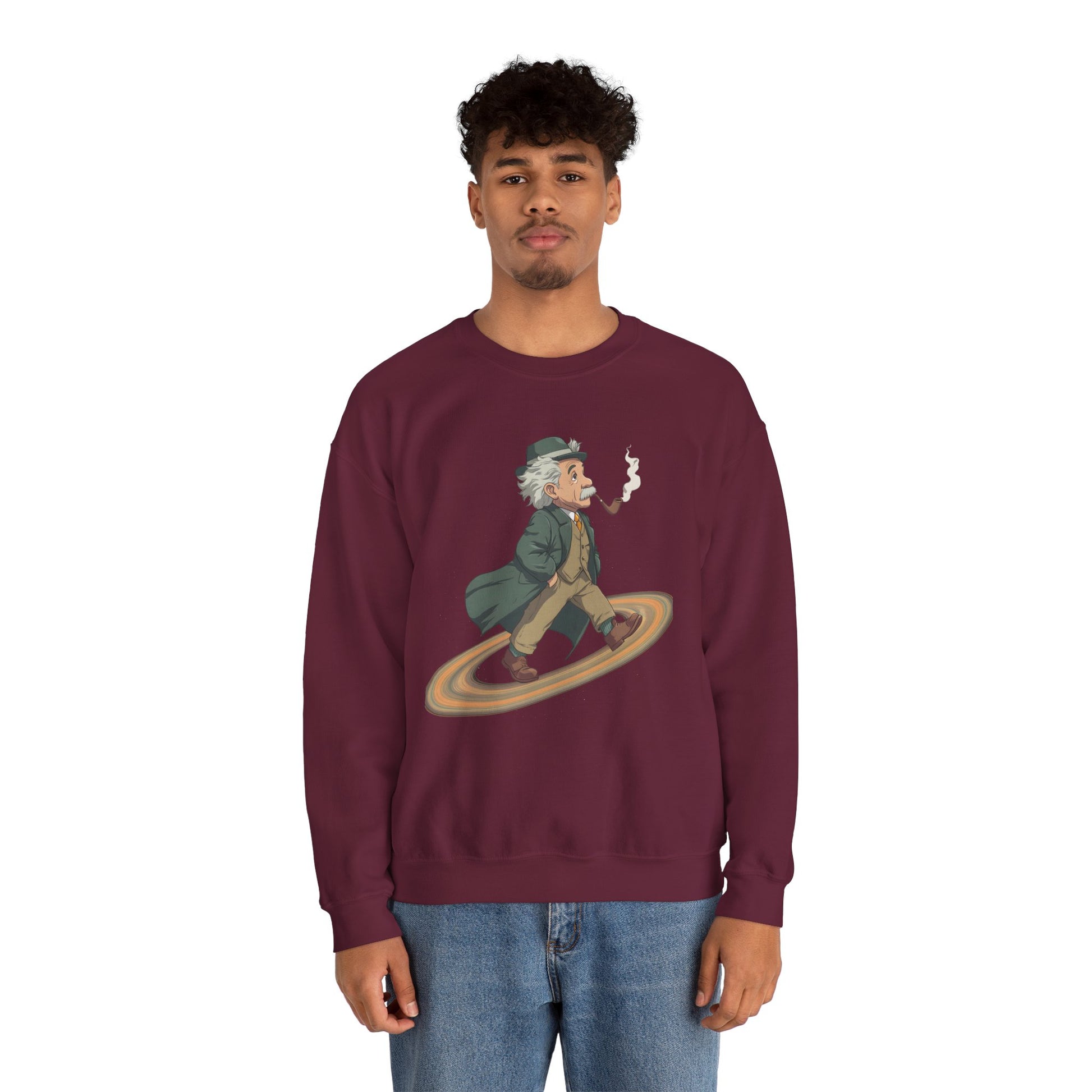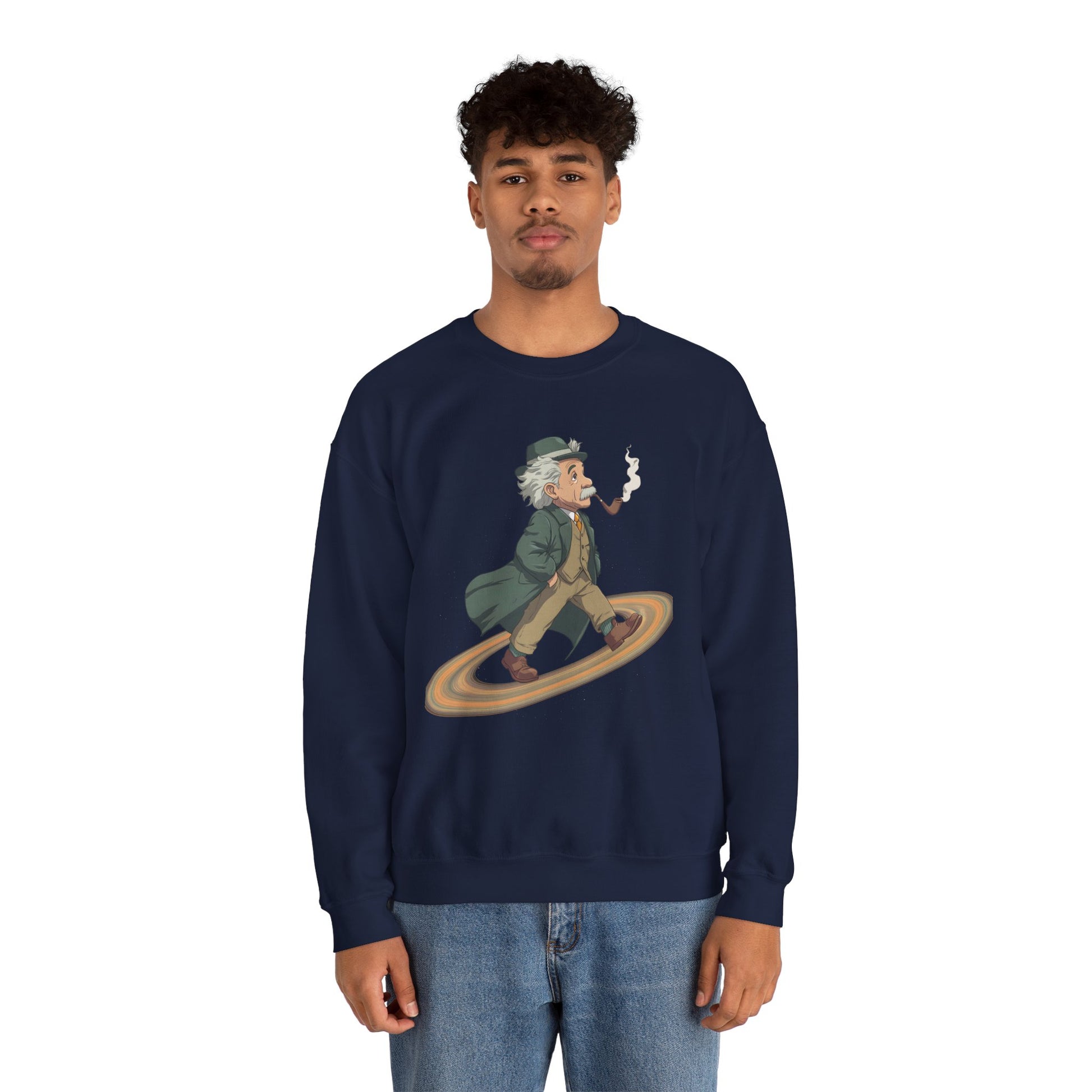 Imagine slipping into a midweight crewneck that feels like a quiet, clever nod to curious minds. This sweatshirt wears the “Einstein on Saturn” idea like a conversation starter—faintly cosmic, quietly witty. It sits comfortably through coffee-fueled late nights, library runs, and weekend stargazing. The embroidered or printed design adds texture and intrigue without shouting; it blends with well-loved jeans, worn-in boots, or a snug beanie. For adults who read astrophysics blogs, sketch constellations in the margins, or simply like clothing that hints at big questions, this crew brings warmth, durability, and a wink of intellectual humor to chilly evenings and casual gatherings under open skies.